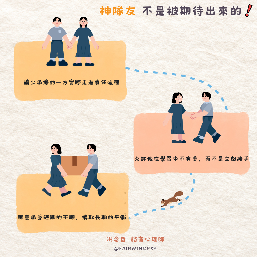 • 允許他在學習中不完美,而不是立刻接手