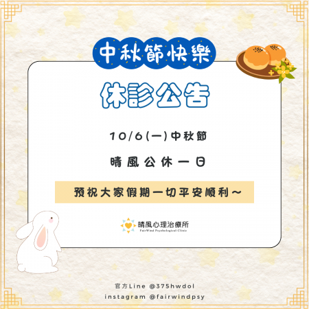 10/6(一)中秋節 公休一日