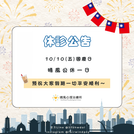 10/10(五)國慶日 公休一日