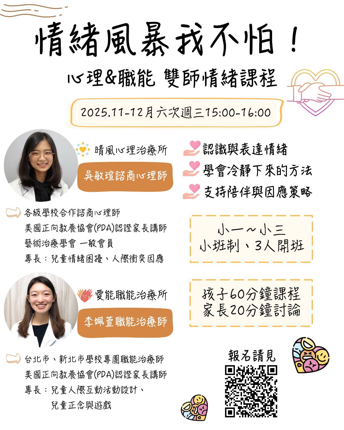👩🏫開課治療師:吳敏瑄 諮商心理師&李姵萱 職能治療師